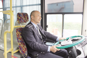 12月3日上午,記者在城西公交首末站見到陸志強的時候,他正在做著發(fā)車前的準備工作。眼前的他看上去十分樸實,但言語間又透露出退伍軍人特有的一種干練。他告訴記者,從2000年開始,他就和公交車打交道了,剛開始是自己承包經(jīng)營,改制后他成為公交公司的一名駕駛員?!半m然收入比以前少一些,但心里踏實了,有這么大的單位做自己的后盾,很有歸屬感。”