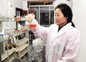 ④張緒美在實(shí)驗(yàn)室給“土壤體檢”。