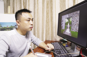 走進姚俊浩的個人攝影工作室,猶如走進了圖片世界,墻壁上、柜子里、工作臺上,到處都是他的婚禮攝影佳作。晚上7時許,幾名前來學習攝影的青年人,坐在沙發(fā)上等著正在吃快餐的姚俊浩給他們上課。