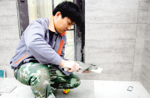 汪立治告訴記者,他15歲開始就跟著父親學泥瓦匠,做了3年后,又開始學鑲貼,到現(xiàn)在做鑲貼工也有20多年了。他說,以前的鑲貼施工很簡單,一是鑲貼的材料品種少,二是業(yè)主追求的鑲貼效果也比較簡單,但現(xiàn)在一套別墅裝修下來,鑲貼用的材料有幾十種,每種鑲貼都有講究,全靠自己琢磨。